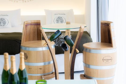 11の名門シャンパーニュ・メゾン(生産者)に働きかけを行い正式に許可を得た、世界初となるオフィシャル・シャンパン・ホテル。11のメゾンは、「ボランジェ」「シャルル・エドシック」「レア・シャンパーニュ」「テタンジェ」「ジョセフ・ペリエ」「ニコラ・フィアット」「ラリエ」「ジャン・ヴェッセル」「テルモン」「キュペルリー」「ドゥモアゼル」。11室ある客室全てをメゾンと共に造り上げており、世界的建築家・小川晋一氏が手掛けたミニマルで洗礼されたデザインの客室では、各メゾンの歴史や想い、世界観、シャンパーニュ文化を体感いただけます。鮨とシャンパーニュのマリアージュをお楽しみいただける、カウンター10席の鮨レストラン「AWA SUSHI 泡鮨」を併設。
