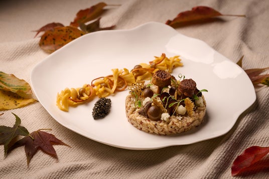谷關周辺地域は、しいたけをはじめとするキノコ類の産地であり、その生産量は台湾全体の5~6割を占めます。(※3)豊富な食物繊維や栄養素を含むキノコ類は、タイヤル族にとって貴重な食材です。キノコづくしディナーでは、前菜、スープ、リゾット、デザートの五品すべてにキノコがふんだんに使われ、地元の滋味を味わい尽くすことができます。ディナーはウォーターガーデンを望むテラスに設けたテーブルに用意され、心地よい自然の風と共に、料理を楽しむことができます。