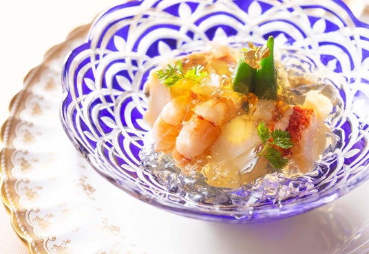 「クイーン・アリス」ならではの“スペシャリテ”が揃うシェフおすすめのコースが、新登場です。海老、蟹、鮑などの“海の幸”を、三杯酢のジュレと柚子ドレッシングでさっぱりとお召し上がりいただく「贅沢サラダ」をはじめ、コンソメで柔らかく煮た大根と、香ばしくソテーしたフォアグラを、鴨のジュ、ガーリック、醤油をベースにしたソースで味わうシグネチャーディッシュ「フォアグラのソテー 大根添え」のほか、「オマール海老のフリカッセ」や「和牛サーロインの網焼きワサビ風味」など、開業時より変わらない味で、多くのお客さまに愛され続けている「クイーン・アリス」の美味を、存分にご堪能いただけます。