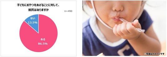 一方で、子どもにおやつをあげることに抵抗があると答えた親は86.5%と多く、「虫歯になりそう(54.7%)」、「その後の食事が食べられなくなる(43.9%)」、「おやつしか食べなくなる(39.9%)」といった抵抗感を持つ親が多いことが明らかになりました。また、「栄養バランスが偏る(32.8%)」や「健康に悪そう(30.4%)」などの、健康面を不安視する声も。おやつは日常的にあげているものの、親として懸念することは多いようです。