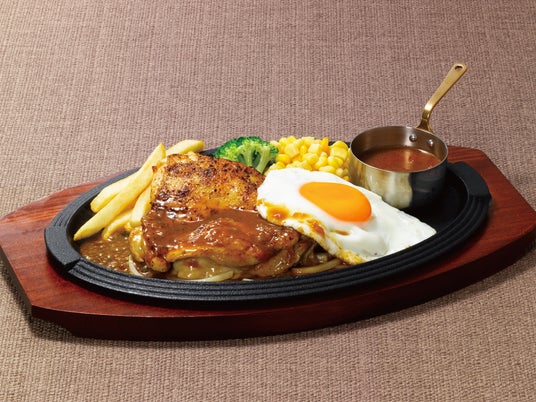 あつあつの鉄板に盛り付けたスパイシーなチキンのグリルは、大判焼きスタイルで再登場。柔らかな食感の鶏もも肉を、表面はパリッと中はジューシーに焼き上げました。バター醤油ソースをかけて、半熟のフライエッグと共に食べるとよりまろやかにお召し上がりいただけます。