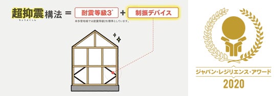 ▲「超抑震構法」を備える「ACE HOME」の住宅は、2020年に『ジャパン・レジリエンス・アワード(強靭化大賞)2020』優秀賞を受賞しました。