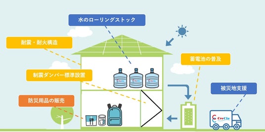 災害対策を万全に整えるためには、防災用品の用意はもちろんですが、水のストックや住宅の耐震などさまざまな面から準備することが大切です。当社は、幅広い事業を活かして“暮らしと住まいの防災”をトータルでサポートすることで、皆様の防災対策に貢献してまいります。