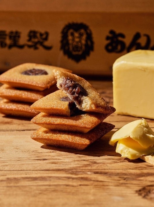 ヘーゼルナッツパウダーとラム酒を使用し、発酵バターの旨味と芳醇な香りを存分に引き立てたガレット生地で、北海道産「えりも小豆」を使用した岡田謹製オリジナル餡子を包みました。しっとりとした食感が美味しさを引き立てます。