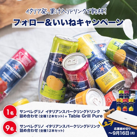 当選者計10名様にはサンペレグリノ12本セットがお試しいただける商品詰め合わせに加えて、うち1名様には豪華家電もセットにしてお届けする予定です。