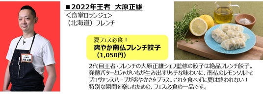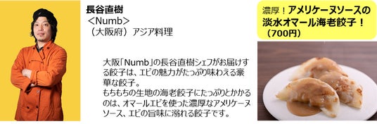 さらに、「あなたが選ぶ!餃子-1グランプリ」への出店9シェフの餃子メニューも決定しました。