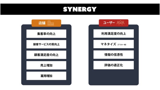 ユーザーと店舗の相互評価により、対等で情報信憑性の高い本質的なレビューを蓄積していくことが可能となり、ユーザーと店舗に利害の偏りがない互恵的なサービスを実現いたしました。