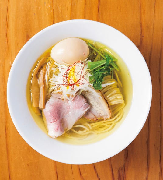 ぐり虎代表作の鶏塩ラーメンは、見た目はあっさり、味は鶏の旨みたっぷり上品な味わいだ。軍鶏、丸鶏などを贅沢に使用し、八時間スープの表面が揺らぐ程度でじっくりと旨味を抽出して丁寧な清湯スープに仕上げている。海と山と湖で採れた日本、イタリア、フランス、モンゴルなどの数種類の塩を厳選して使用し、昆布、椎茸、鰹節などの旨味を重ね寝かし育て合わせることで、芳醇な香りと旨みが極限まで引き出され、鶏の旨みが鼻に突き抜ける珠玉の一杯!