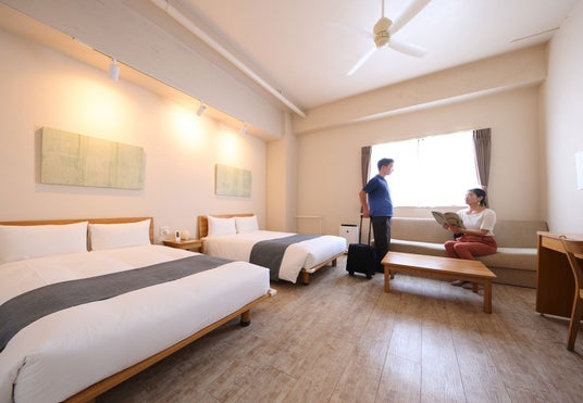 沖縄・石垣島の繁華街、美崎町にある古いホテルをリノベーション。シンプルながらも自然素材を多く使った空間設計により、リゾートとビジネス、いずれのニーズにも対応しています。