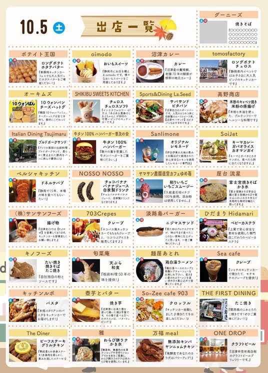 当日は、人気のキッチンカーが11台集結し、秋の味覚を堪能できる多彩なメニューを提供します。また、クラフトビールの特設ブースも設置され、ビール愛好家にはたまらないラインナップが揃います。