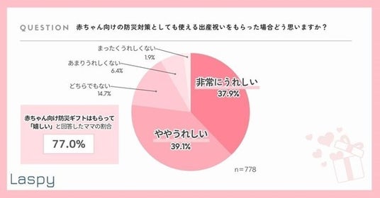 ・防災対策としても使える出産祝いを「うれしい」と感じるママは77.0%
