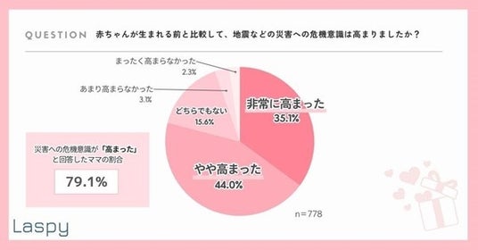 ・赤ちゃんが生まれる前と比べて、災害への危機意識が「高まった」と回答したママは79.1%
