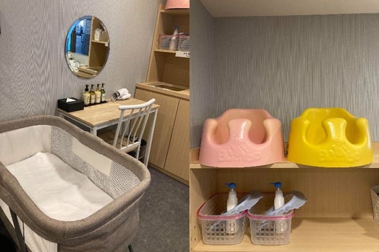 ベビーベッド(女性大浴場内)・BAMBO・赤ちゃん用ボディーソープとシャンプーハット