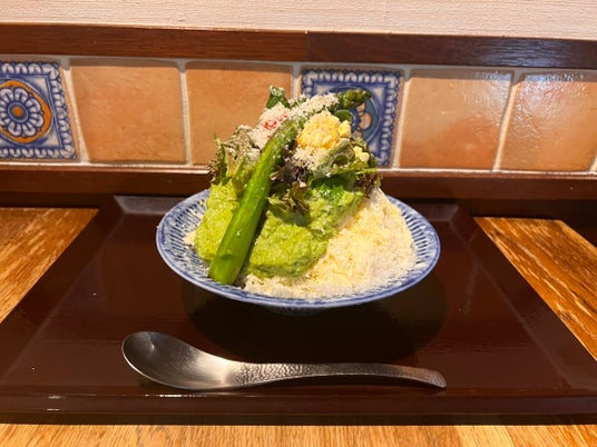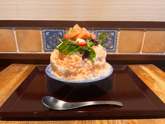 かき氷といえば、甘いスイーツの印象が強いかと思いますが、最近は『お食事系かき氷』といったジャンルのかき氷の注目度が高まっています。お肉がのったかき氷や、カレー風のかき氷、サラダ仕立てのかき氷など様々なかき氷が、いろんな店舗で販売されております。
