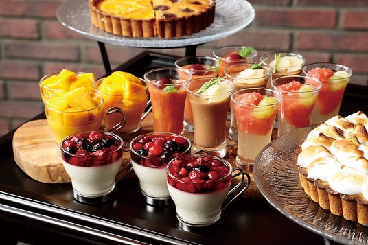 お客様のお席までワゴンをお持ちし、ずらりと並んだドルチェの中からお好きな4品をお選びいただきます。お選びいただいたドルチェはその場で盛り付けやデコレーションを行い、目の前で“自分だけ”のオリジナルプレートとして完成していくライブ感もお楽しみいただけます。