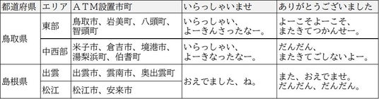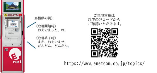 株式会社イーネット(本社:東京都中央区/代表取締役社長:高橋 聡一郎)は、株式会社山陰合同銀行(本社:島根県松江市/取締役頭取:山崎 徹)と協力し、9月2日(月)から鳥取県内と島根県内のファミリーマート等に設置されたイーネットATMにて、各県のご当地言葉でご挨拶をする音声サービスを開始いたしました。
