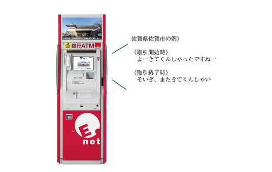 株式会社イーネット(本社:東京都中央区/代表取締役社長:高橋 聡一郎)は、株式会社佐賀銀行(本社:佐賀県佐賀市/取締役頭取:坂井 秀明)と協力し、9月2日(月)から佐賀県内のファミリーマート等に設置されたイーネットATMにて、佐賀県のご当地言葉でご挨拶をする音声サービスを開始いたしました。