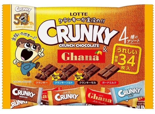 株式会社ロッテは、2024年9月に50周年を迎えた「クランキー」ブランドより、ガーナよりもクランキー個包装が多く入った新商品「クランキー&ガーナシェアパック」を10月29日に発売します。ロッテではこれまで、「ガーナ」をメインにした「ガーナ&クランキーシェアパック」を定番商品として発売していましたが今回、15歳‐69歳の男女へ「『ガーナ』と『クランキー』という2つの商品ブランドだったら、あなたはどっち派ですか」とのアンケートによると、クランキー派が約4割、ガーナ派は約3割とクランキー派が多数を占める結果となりました。そんなクランキーファンのみなさまの声に応えるべくこの商品でしか味わえない「ソルト」と「モカ」の2フレーバーも入った、クランキーが主役のアソート大袋をぜひお楽しみください。