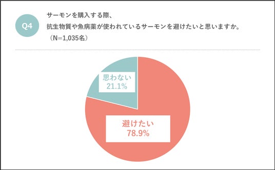 ■約8割が抗生物質を投与されたサーモンを避けたいと回答。養殖されたサーモンには抗生物質が使用されたものがあることを7割以上が知らない現状。