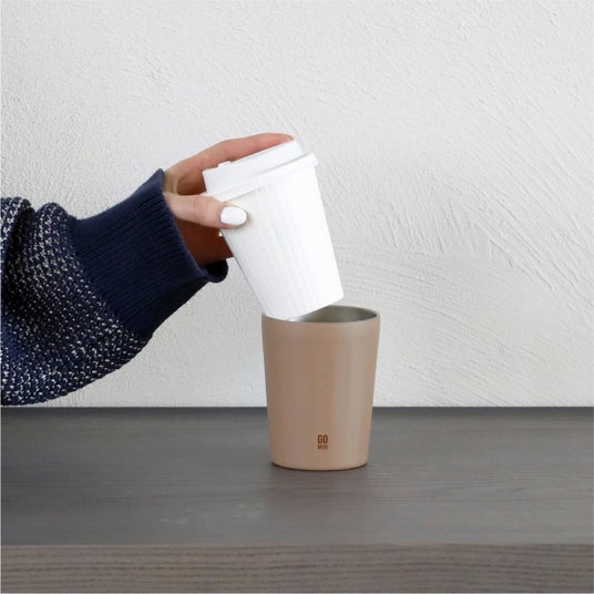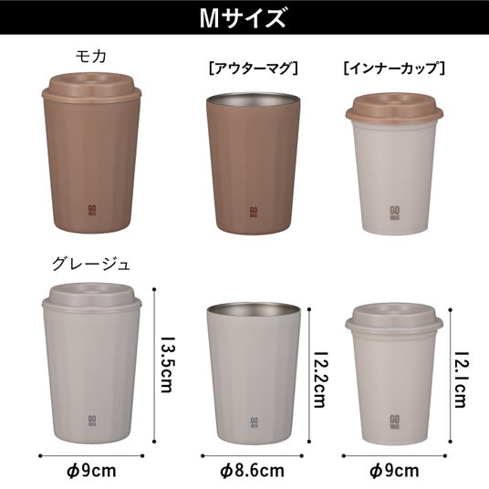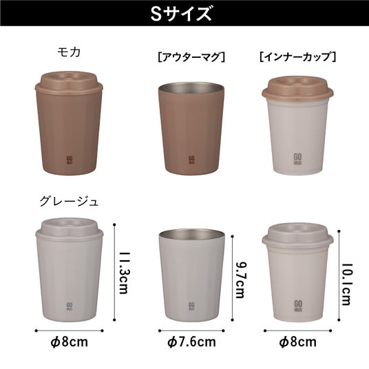 ホットコーヒーカップがぴったり入る「Sサイズ」と、アイスコーヒーカップがぴったり入る「Mサイズ」の2サイズ展開です。