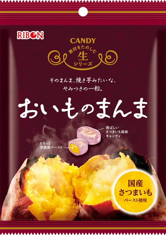センター入りキャンディの特長を活かし外皮を紫色、ペーストを黄色