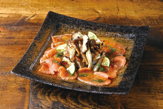 炙りきのことスモークサーモンのカルパッチョ仕立て 698円(税込768円)