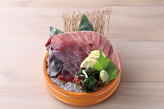 マグロの大トロ、中トロ、赤身、血合い部分を一度にお召し上がりいただけます。