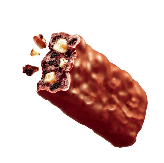 ココアクッキーとプレーンビスケットをチョコレートでコーティングした、ココアのほろ苦さとチョコレートの甘みがマッチした食べごたえのあるチョコバーで、甘さと圧倒的ザクザク感がおなかもココロも満たします。