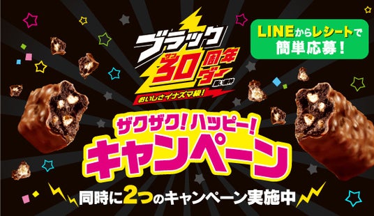 発売30周年を迎えた感謝を込めて、「ザクザク!ハッピー!キャンペーン」を開催いたします。なんと、同時に2つのキャンペーンを実施します。どちらもLINEから購入レシート画像で簡単に応募が可能です。ぜひご応募ください。