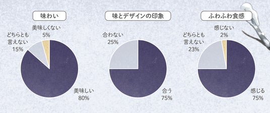 古谷乳業で実施した「冬の入道雲」の試食アンケート調査(n=80)によると、75%の人が「ふわふわ食感」と回答。「今までにない食感で驚いた」「本当に雲を食べているかのような気持ちになった」というコメントがありました。また、生乳100%で酸味の少ない味わいに関しても80%が「美味しい」と回答しています。
