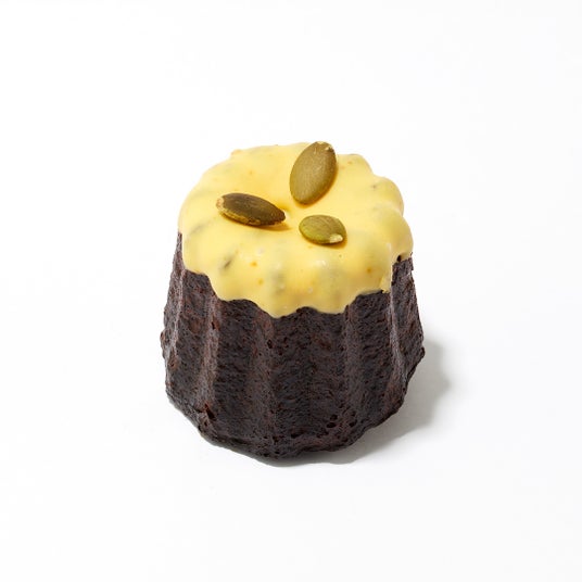 かぼちゃ味のカヌレにかぼちゃのチョコでコーティングしたかぼちゃづくしの一品。