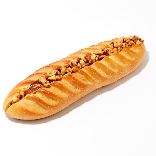 ヴィエノワにピーナツクリームを絞りキャラメルコーティングしたアーモンドをトッピング。