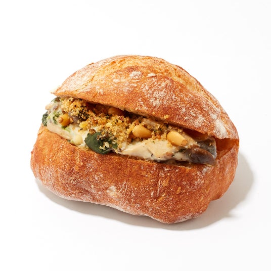 4種のきのこを使用したきのこクリームを香り高いチャバタにサンド。きのこガーリックパン粉がアクセント。