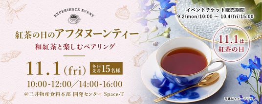 三井農林株式会社(所在地:東京都港区、代表取締役社長:佐伯 光則 以下、当社)は、プレミアムティーショップ「nittoh.1909」主催で、紅茶の日(11月1日)を記念した『紅茶の日のアフタヌーンティー -和紅茶と楽しむペアリング-』を開催いたします。本イベントは、紅茶の魅力についてご紹介しながら、紅茶と様々なフード、スイーツとのペアリングを体験していただける、「nittoh.1909」で人気の体験型イベントとなっており、去年に引き続き、2回目の実施となります。