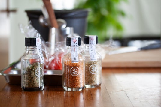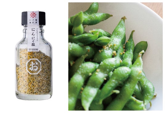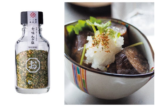 七味ねぎ塩伝統七味に乾燥ねぎを加えてブレンドした塩。うどんやそばの風味足しにふりかけて、天ぷらや焼き鳥の付け塩として。煮物や炒め物にも