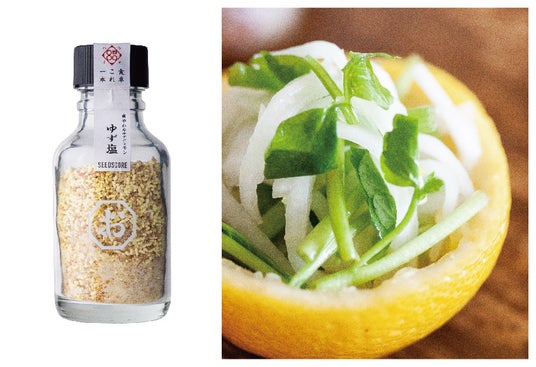 ゆず塩爽やかなゆずの香りが食欲をそそります。豆腐、白身魚、野菜、鶏肉などの淡白な味を引き立てます。鍋や蒸し物の味付けに、フライや天ぷらの付け塩に。
