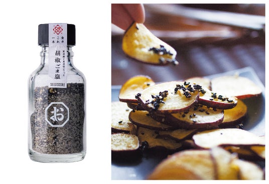 胡椒ごま塩胡椒ゴマにローストオニオンのカリッとした香ばしい食感が楽しい塩。ご飯との相性がよいです。おにぎりやふりかけのようにご飯にかけて。鶏肉、魚料理などの下味や仕上げに。サラダのトッピングに