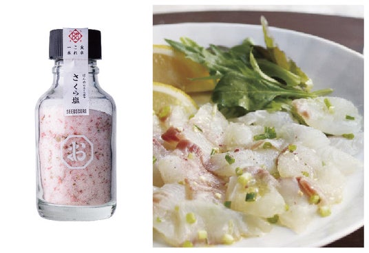 さくら塩フワッと桜の香りが春を呼びます。香り高い時期の桜の花と葉を塩と混ぜ合わせた調味塩です。ご飯にふりかけて。フライや天ぷらの付け塩に、白身魚のカルパッチョ、鶏のささみや胸肉の焼き物や炒め物、揚げ物に。お花見弁当の風味づけに