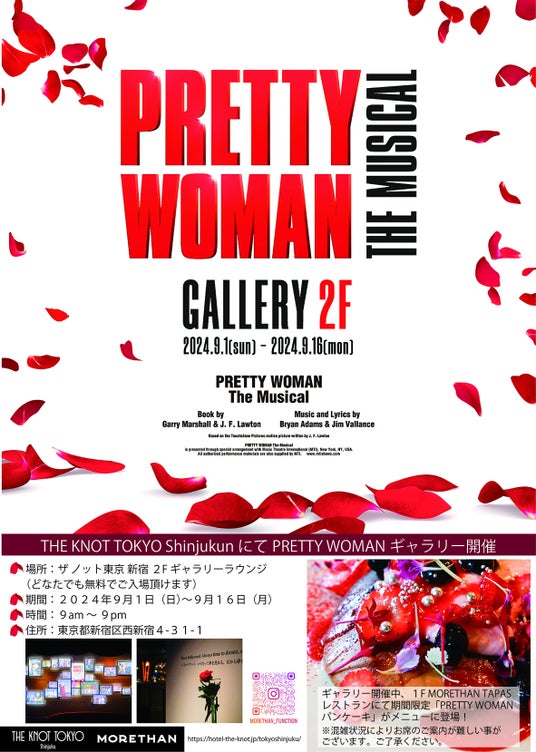 1F MORETHAN TAPASでは期間限定「PRETTY WOMANパンケーキ」が登場。モアザンは新国立劇場オペラパレスでの公演劇中で使用されるパンケーキを提供いたします。このパンケーキをプリティ・ウーマンの世界観で彩ったスペシャルパンケーキとして、期間限定でメニューに登場。