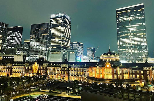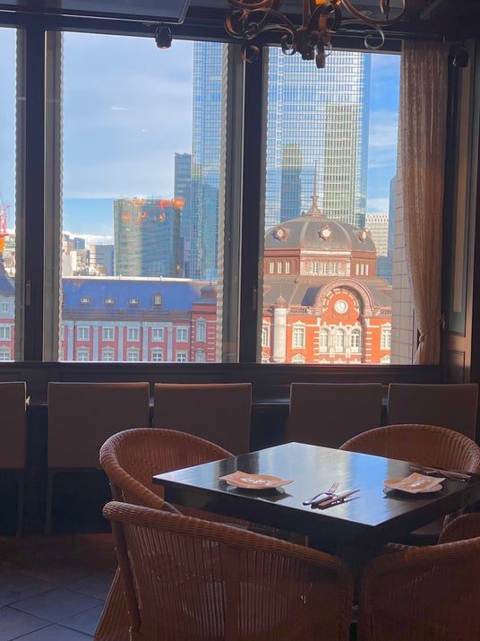 カサブランカシルクは丸ビル5階にあり、窓からは美しい東京駅が一望できます。1914年に開業した東京駅は、幾多の歴史を経て2012年に修復を終え創建当時の姿に復元されました。
