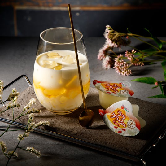ララクラッシュのジューシーなつぶつぶ食感は、杏仁豆腐のとろける食感をイメージさせ、相性のよいフレーバーです。コクのある牛乳感をベースに、ほのかな杏仁感を加えた、甘く広がるクリーミーな味わいに仕上げました。