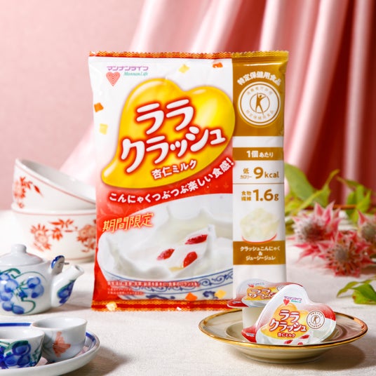 株式会社マンナンライフ(本社 群馬、社長 鶴田一裕)は、特定保健用食品「蒟蒻畑ララクラッシュ 杏仁ミルク」を9月2日(月)に全国発売いたします。