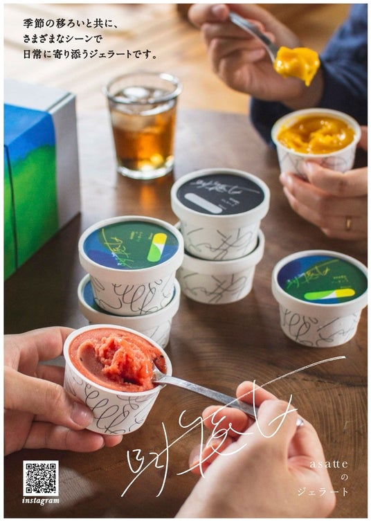 東京・谷中の路地に佇む「asatteのジェラート」は、全国各地から厳選された食材を使用し、素材の味を生かしたジェラートを提供しています。そんな「asatteのジェラート」の魅力的なフレーバーの中から、コミュニケーションサウナ後にぴったりの五種類のフレーバーをセレクト。サウナ後の火照った体を美味しくクールダウンすることができます。