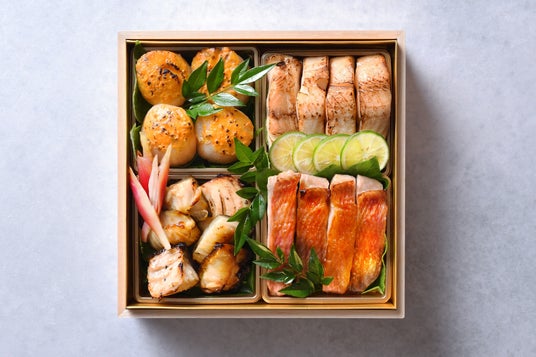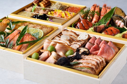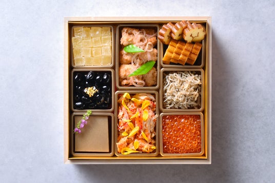 瀬戸内レモン琥珀糖/和栗羊羹/北海道産花咲カニ土佐酢和え/穴子南蛮漬け/イクラ/ちりめん山椒/丹波ぶどう豆 赤ワイン味/メープル香る伊達巻