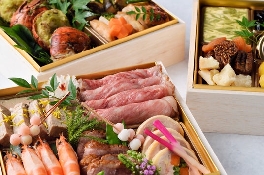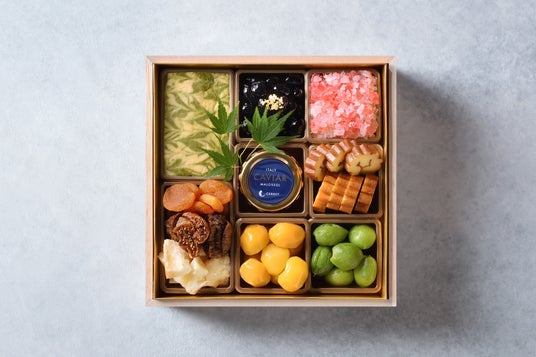 抹茶のチーズケーキ/栗きんとん/イタリア産キャビア/ベリーケーキ/パルミジャーノ・レジャーノ/セミドライフルーツ/丹波ぶどう豆 赤ワイン味/若桃甘露煮/メープル香る伊達巻