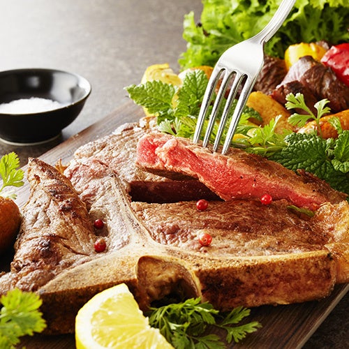柔らかくジューシーな肉質が魅力のサーロインと、脂肪分の少ない上質な赤身のヒレを同時に楽しめるTボーンステーキを特別にご用意しました。そのほか、塩?で下味をつけた豚肩ロースやタンドリーチキンなど5種類のお肉をはじめ、ホタテやイカなどの新鮮な海鮮、グリル野菜、自家製ピザ、デザートにはスモアを楽しめるボリューム満点のラインアップです。