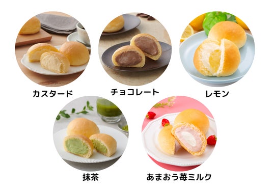 内容:くりーむパン(カスタード・チョコレート・レモン・抹茶・あまおう苺ミルク)各2個入
