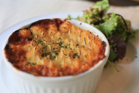 イギリスでは子どもも大人もみんな大好きな家庭の味、コテージパイ。牛ひき肉と野菜のミートソースの上に口溶けなめらかなマッシュポテトをトッピング。