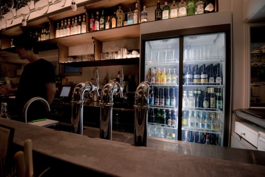 お一人さまやカップルにも人気のカウンター席。カウンター越しのドラフトビールは随時3種類とり揃えています。