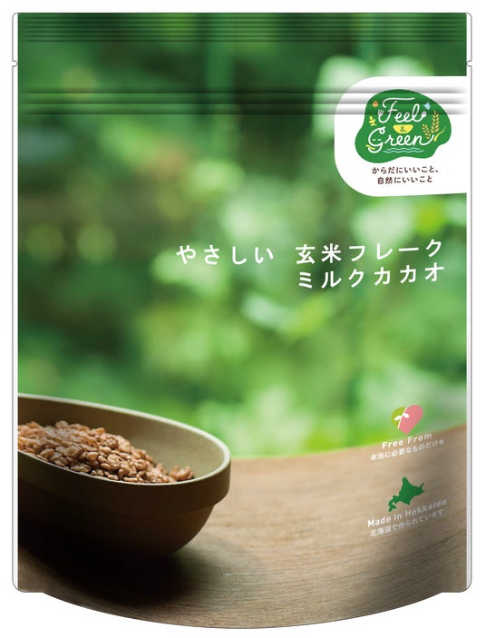 「本当に必要な」ものだけで作ったこだわりの玄米フレーク。 深い甘みが感じられるミルクカカオでやさしく味付けした北海道産玄米フレークです。お子様の「やさしい」おやつとしても最適です。